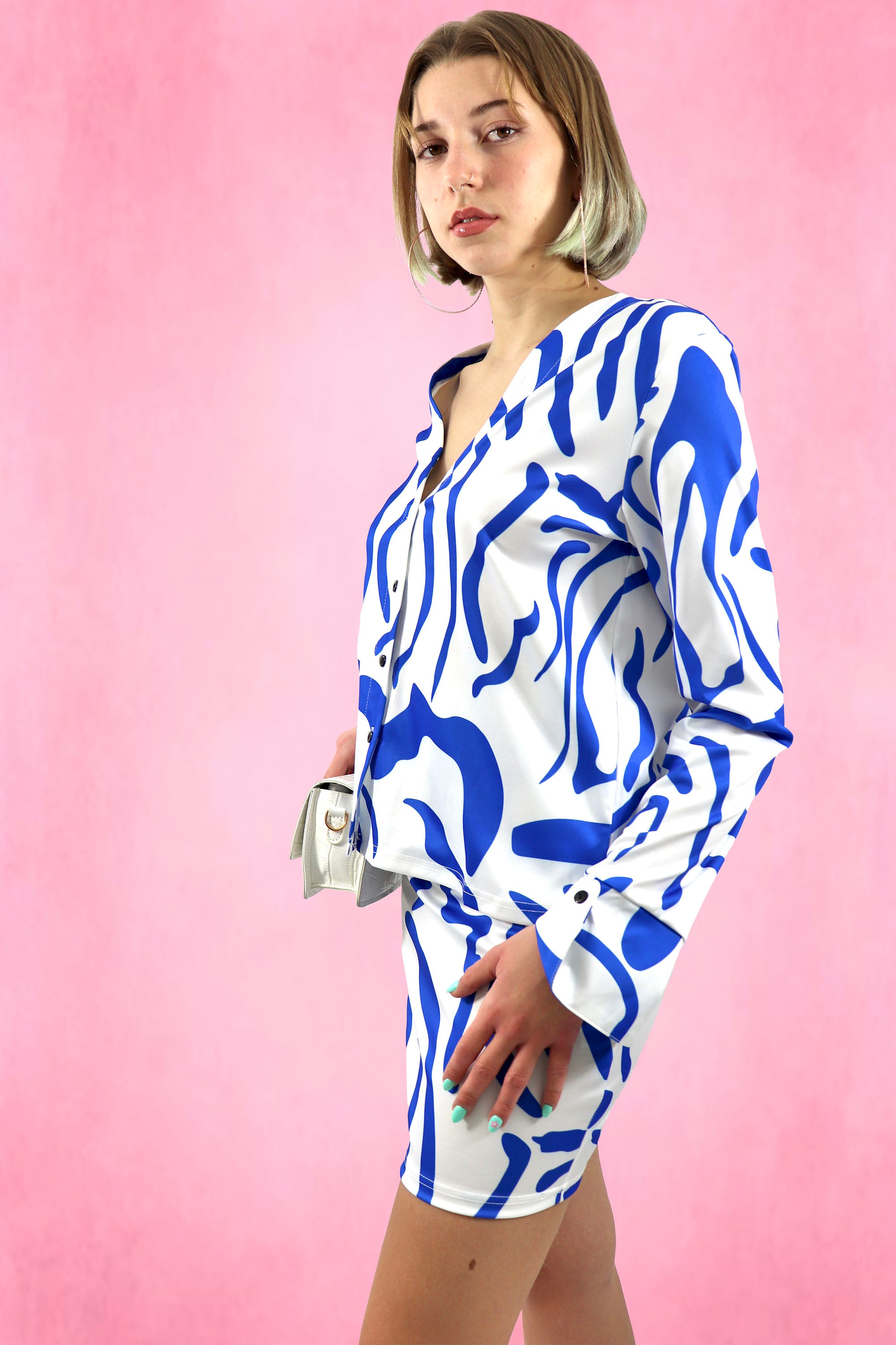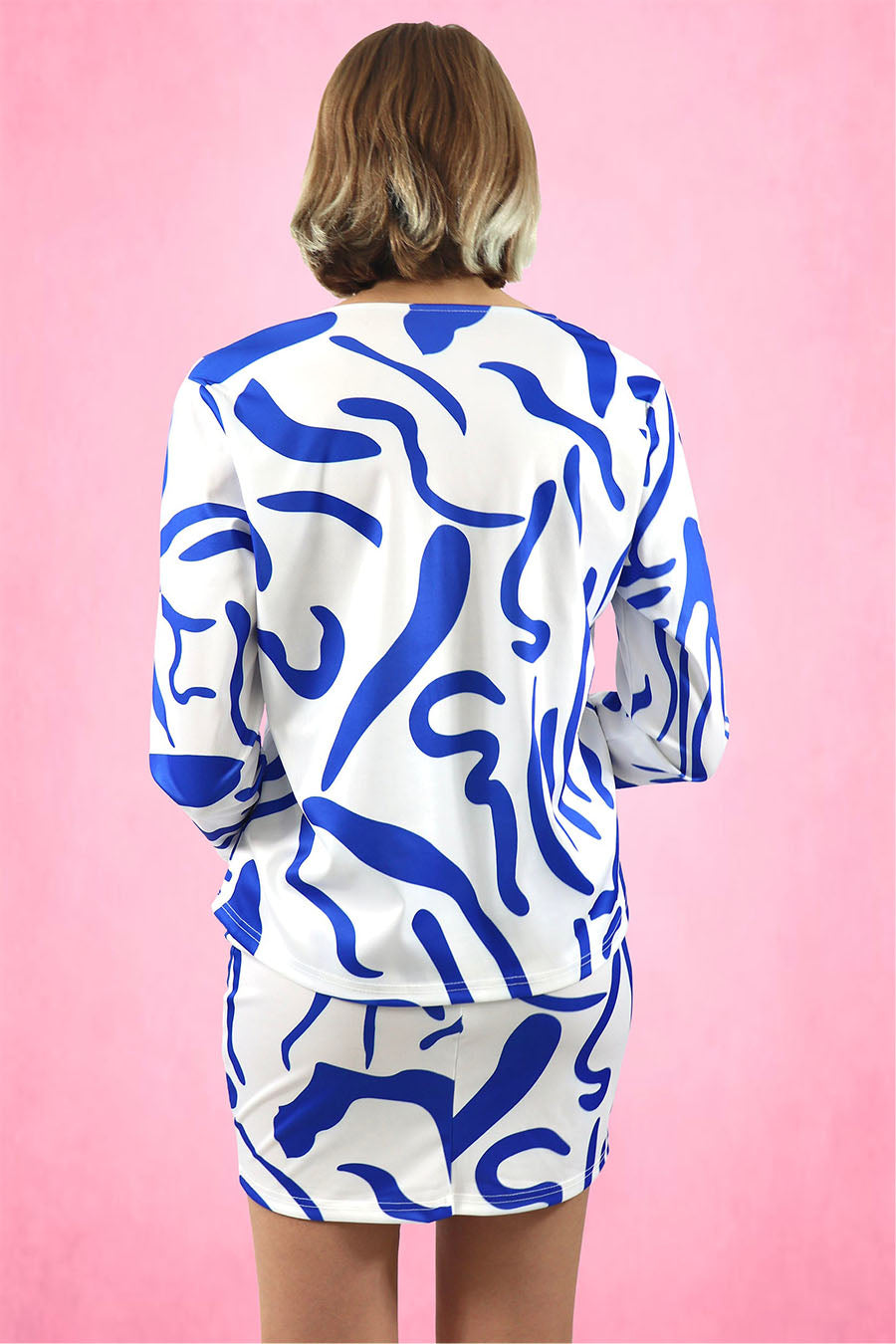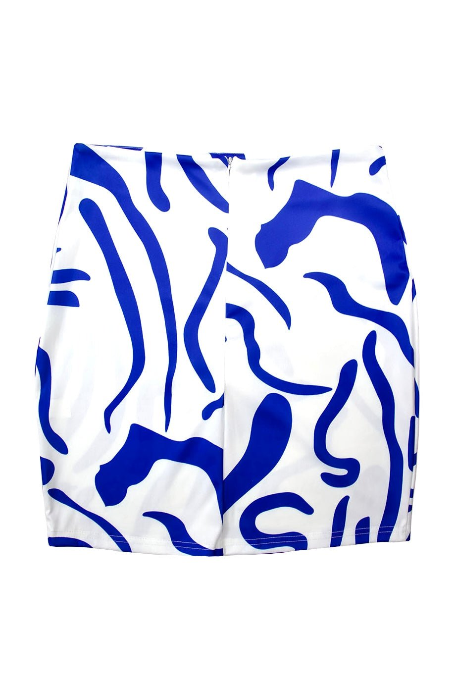 Retro patterned printed mini skirt with zipper on the back side. Made with stretch fabric.