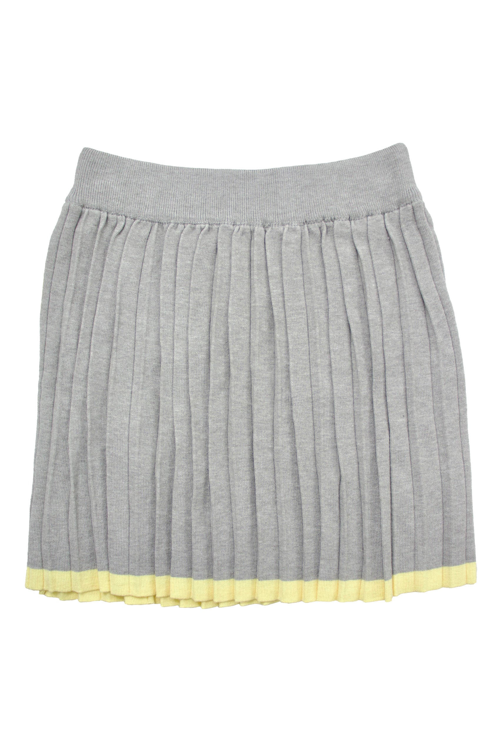 Knitted pleated skirt with elastic on the waist. Yellow stripe design hem.