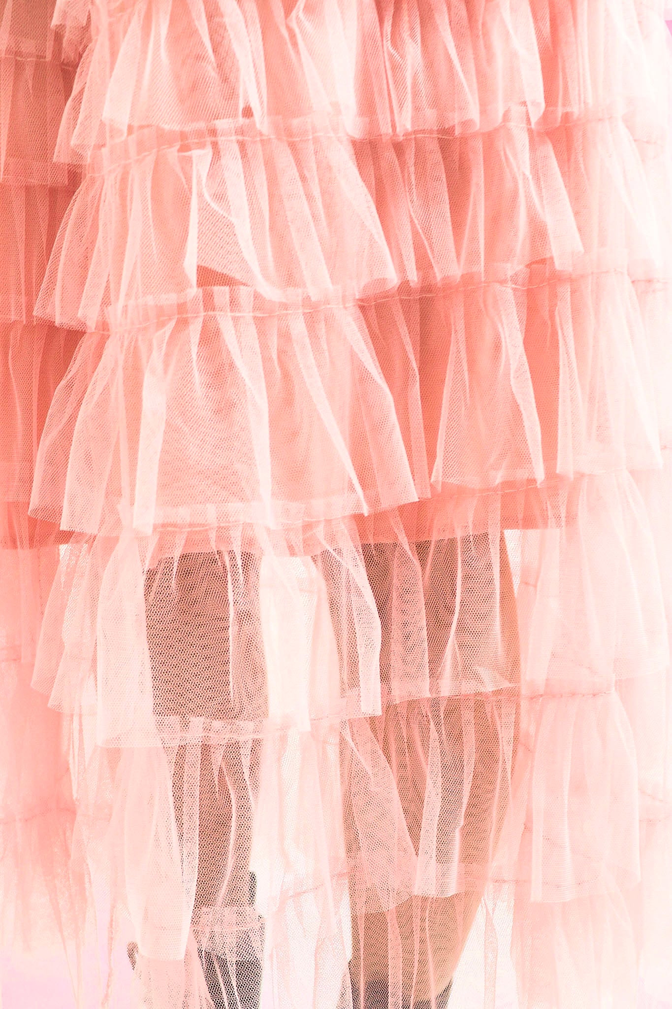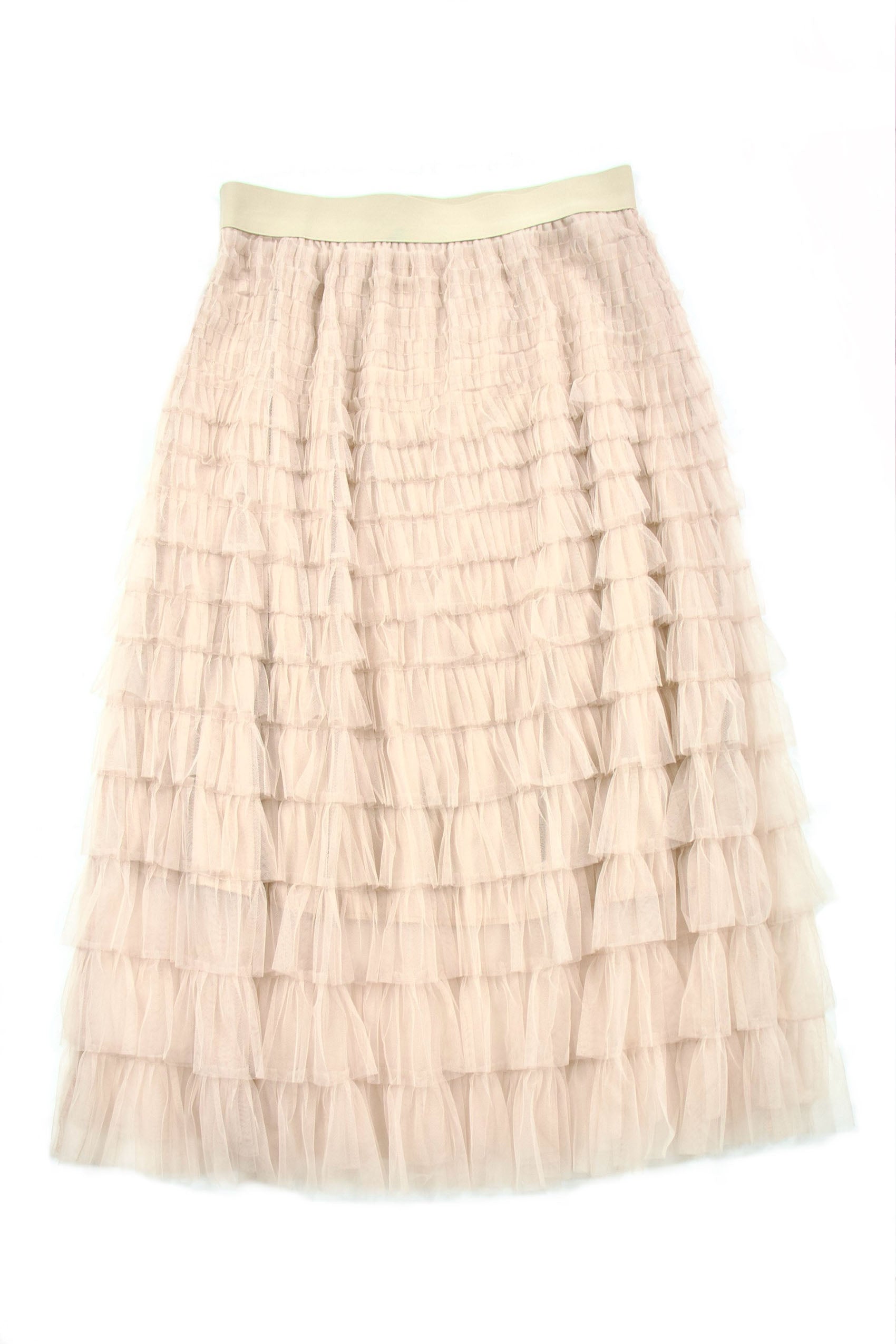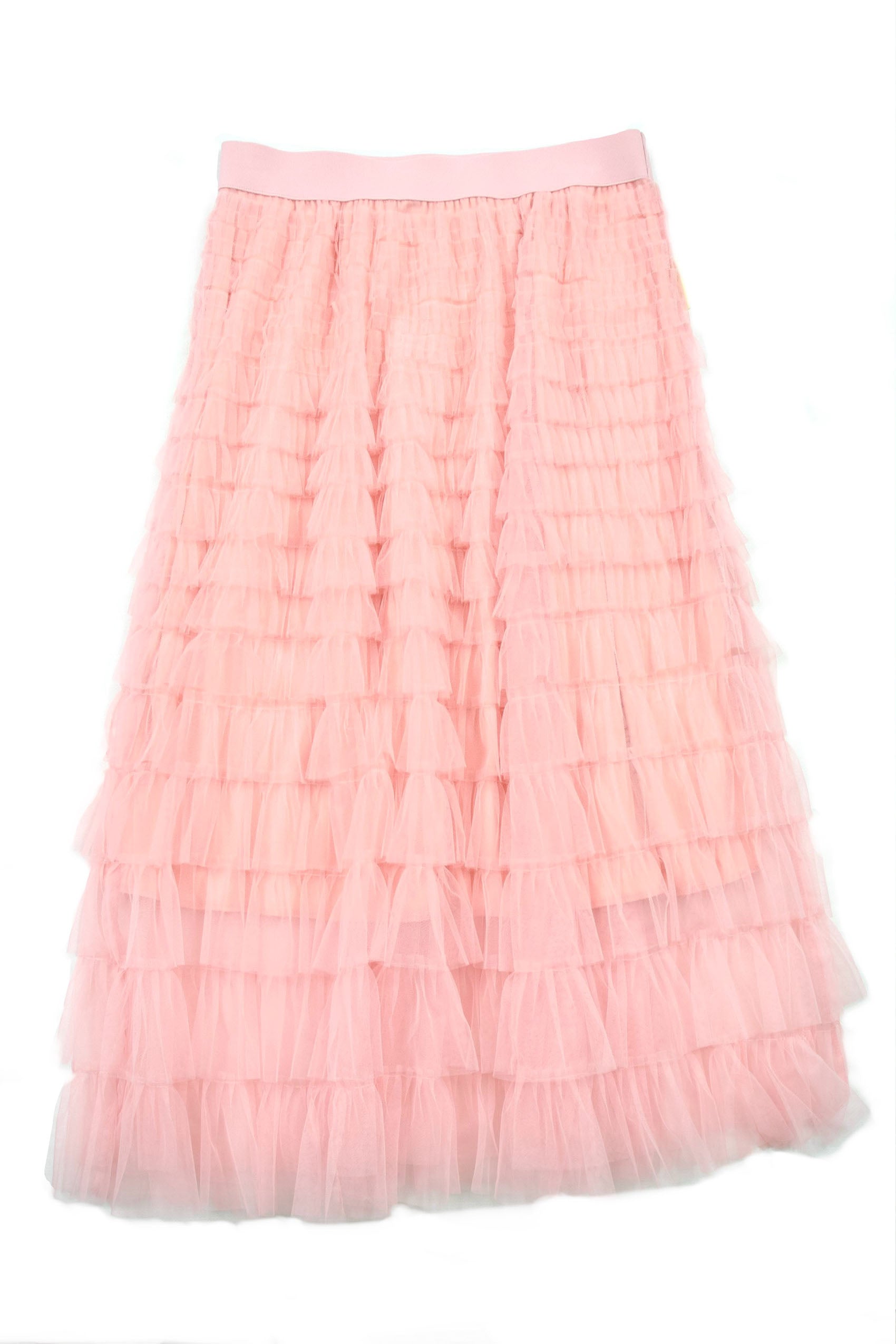 Layered ruffle long skirt with soft elastic belt on the waist.